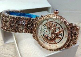 Forest Luxury Gold-Tone Dial Wrist Watches, Vintage Carved Pattern Band, Quartz Movement for Men